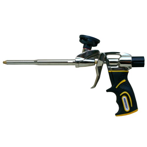 The polyurethane expanding foam applicator ideal for sealing, filling, and sealing small gaps. It is a heavy-duty yet lightweight and compact tool with an ergonomic design that allows it to be used for a long time. Easy to use and has a spring-loaded trigger for precise flow control.