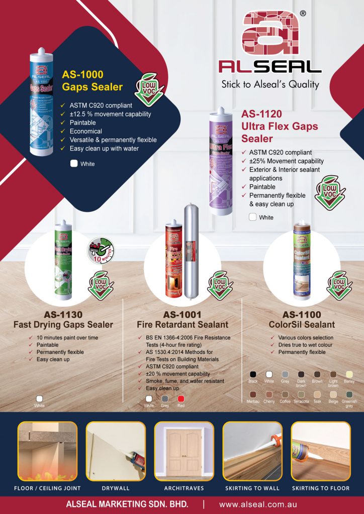 AS-1000 Gaps Sealer is designed for general sealing applications such as doors and windows joints, built-in cabinets and wardrobes installation, architraves, skirting boards of wood flooring, etc.